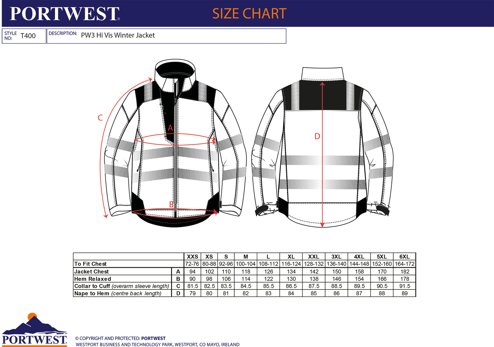 Portwest PW3 Hi-Vis Winter Jacket T400