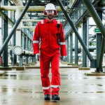 This coverall is perfect for the demands of the offshore industry. Constructed with a highly innovative flame-retardant fabric with high visibility reflective tape double stitched for enhanced visibility. Meeting all the required EN standards, features include triple stitched seams, high visibility strips on shoulders, arms and legs, concealed 2-way front brass zip and two front slant chest pockets with concealed brass zips.