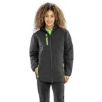 On-trend padded plus softshell combination. Supersoft, lightweight and warm. Ready to brand. Quiet to wear. Contrast colour pocket zips. Full front zip with chin guard. Stand-up padded collar. Padded body. Soft bound armhole. Black zip pulls. Hangtag.