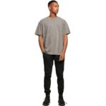 Oversized fit with side seams. Short sleeves. Ribbed crew neck style, with taped neck. Set-in sleeve. Size label only, for easy rebranding – colour-coded black for unisex. Combed ringspun cotton for ultra comfort. Surface excellent for print or embroidery. Twin-needle stitching detail on sleeves and bottom hem.