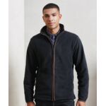 Women’s long sleeve fleece jacket with contrast trim detail. High neck rounded collar, leading into a two-way zipper. Two zipped external pockets and two internal open pockets. Stitched side panel detail. Elasticated cuff with trim detail. Contrast fabric hook on back of collar for hanging up. Certified WRAP, Amfori BSCI and Sedex.