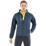 On-trend padded plus softshell combination. Supersoft, lightweight and warm. Ready to brand. Quiet to wear. Contrast colour pocket zips. Full front zip with chin guard. Stand-up padded collar. Padded body. Soft bound armhole. Black zip pulls. Hangtag.